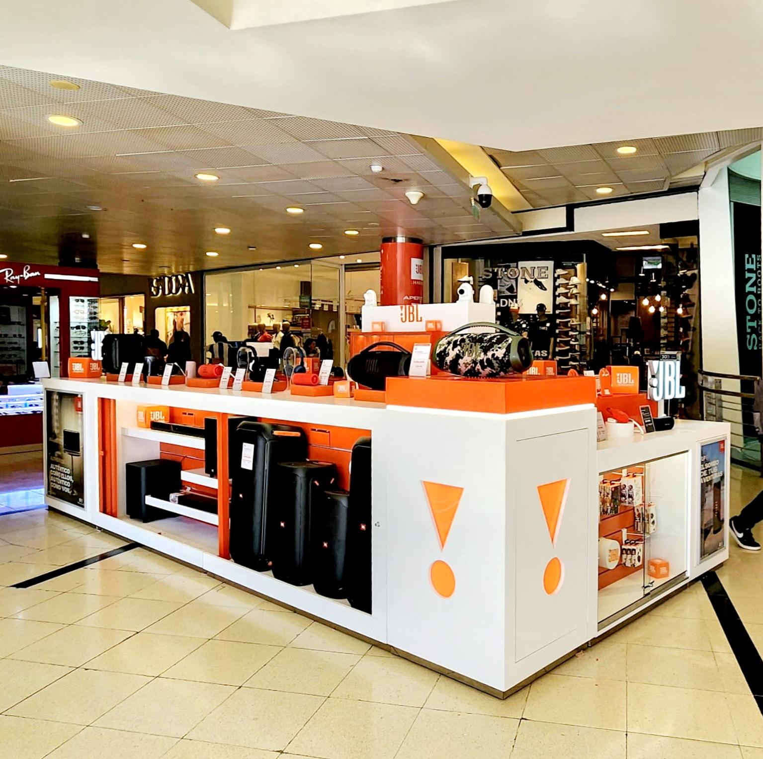 De esta forma, JBL introduce en la Argentina el formato punto de venta “kiosk”, el primero de la marca en el país. Se trata de un puesto de venta que se puede ver en los pasillos de los centros comerciales en formato isla.
